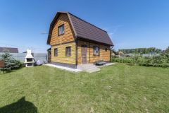 Участок правильной прямоугольной формы занимает 10 соток и предназначен для индивидуального жилищного строительства (ИЖС). На территории также имеется гостевой дом в два этажа. На первом этаже расположены кухня, гостиная, сауна и помывочная, а на втором этаже — большая спальня. Участок тщательно ухожен: здесь есть теплицы, плодовые деревья, кустарники, зелёный газон и зона для барбекю.