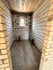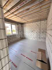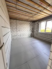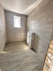 Дом с косметическим современным ремонтом (в санузле плитка, установлена инсталляция и унитаз, натяжные потолки со светильниками): стяжка пола ровная, стены выровнены под маяк - финишная штукатурка, планируется покрытие Пола - ламинат.