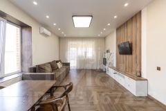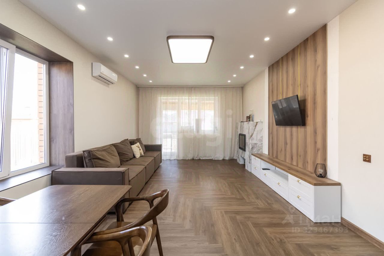Особенности дома: Дом общей площадью 100 квадратных метров отличается удобной и функциональной планировкой. Здесь комфортно разместились кухня-гостиная, три спальни, большая гардеробная комната и раздельный санузел. Современный ремонт выполнен качественными материалами: тёплый пол и покрытие кварц-винилом создают дополнительное удобство и эстетику пространства. Бытовая техника остаётся по договорённости, значительная часть мебели также доступна покупателю. Особым шармом обладает действующая гостиная с настоящим камином.