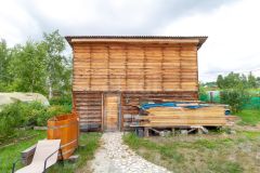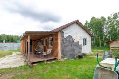 Стены дома выполнены из дерева и утеплены минеральной ватой, что обеспечивает отличную теплоизоляцию. В случае необходимости, часть стен, которая не зашита, может быть легко завершена — все необходимые материалы уже в наличии. Фундамент дома, бани и хозяйственной постройки выполнен в виде ленточного фундамента, что гарантирует долговечность и надежность.