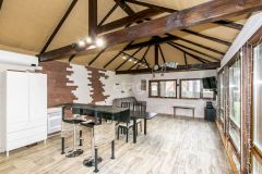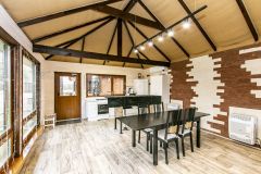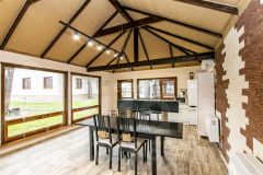 Это 164 кв.м. уюта и комфорта с просторной кухней- гостиной, в доме имеются дополнительно три спальни. Дом имеет один этаж, с высотой по коньку 5,50 метров. В доме присутствует антресольный этаж. На дополнительном этаже оборудована игровая для детей.