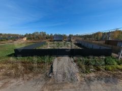 2) Забор из профилированной стали с откатными воротами и отдельной пешеходной калиткой, окружающий весь участок и отсыпанный въезд.