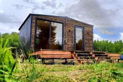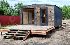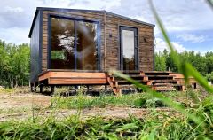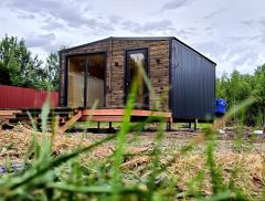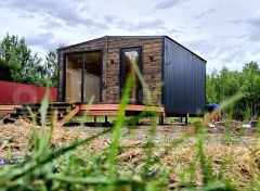 Внутренняя отделка выполнена деревом, создавая уютную и экологичную среду. Уже установлены душевая кабина и инсталляция, что сокращает затраты на доработку. Участок оборудован септиком и скважиной.