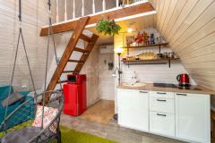Продается стильный дом в скандинавском стиле в районе Мелиораторов, с центральным водоснабжением. Построен из экологически чистых материалов. Панорамные окна делают дом максимально светлым и уютным. Перед входом просторная терраса. На 1 этаже кухня гостиная, санузел и с выходом на веранду. Второй этаж подготовлен для оформления спальни. Дом готов для круглогодичного проживания, по всему периметру теплый пол. Установлен кухонный гарнитур, стол, стулья, диван, телевизор, кондиционер. На участке построена шикарная баня, чан, есть теплица, парковочное место, переливной септик. Участок 4,2 соток, очень компактный, правильной формы с большим количеством плодоносящих деревьев, кедрами. Территория охраняемая. Дорога асфальтирована. Рядом расположены магазины Пятерочка, Магнит, аптеки.