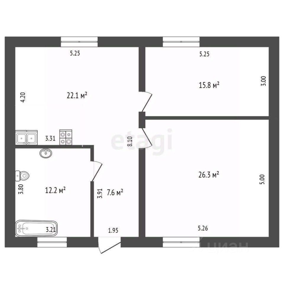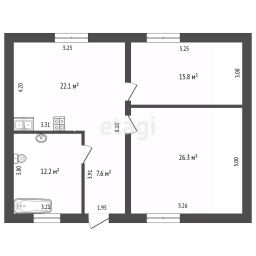 Планировка дома включает просторную кухню-гостиную, две изолированные комнаты и большой совмещенный санузел. Это идеальное пространство для жизни и встреч с близкими.