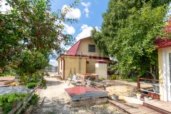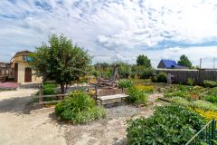 Автономные коммуникации включают септик на 5 кубов и скважину глубиной 20 метров, что гарантирует независимость от центральных сетей. Двухэтажная баня, построенная два года назад, оснащена ванной комнатой на первом этаже и гостиной на втором, что делает ее идеальным местом для отдыха. По периметру участка установлены четыре камеры видеонаблюдения с записывающим устройством, обеспечивающие безопасность.