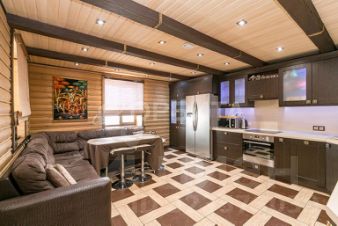Дом качественного исполнения, с сауной, два этажа. На первом этаже кухня-гостиная 23 м², просторная прихожая, санузел, помывочная и парная, на втором этаже две комнаты. На полу по первому этажу уложен керамогранит, стены обшиты деревом. Сауна обшита липой. При продаже всё остаётся и входит в стоимость. Стены из газоблока 300 мм, утеплитель 100 мм и керамический кирпич. Скважины 40 метров, вода заведена в дом, система водоочистки, септик 11 м. Установлен водонагреватель на 8О литров, принудительная вентиляция.