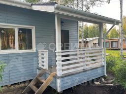 Угловой участок. Ванная и кухня оборудованы мебелью и сантехникой, в прихожей установлен шкаф. Обогревается электрическими конвекторами. Дверь входная с терморазрывом 100 мм. Окна тройной стеклопакет, профиль 70 мм Rеhаu, дверь на террасу 70 мм Рrорlех.