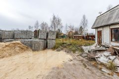 Продается выровненный, отсыпанный участок с домиком и фундаментом для нового дома. Залита монолитная железобетонная плита. Заложены выводы под коммуникации.