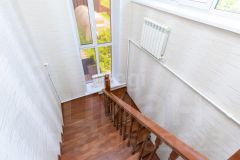 Блоки имеют идентичную планировку. На первых этажах оборудованы: гостиная, кухня, гардероб и санузел, помещения общего назначени. На вторых этажах размещены по 3 жилых комнаты, ванная, совмещенная с санузлом и лоджия. Выполнен косметический ремонт.
