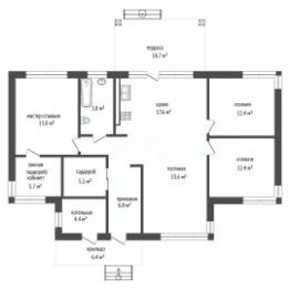 Материал стен: Стены дома выполнены из керамзитоблока марки М-50 толщиной 290 мм, что придает конструкции прочность и хорошую звукоизоляцию. Этот материал помогает поддерживать комфортный микроклимат внутри дома, обеспечивая тепло зимой и прохладу летом.