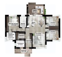 Фундамент: Монолитная плита из бетона марки М300 обеспечивает прочность и надежность основания дома. Армирование в два слоя делает фундамент устойчивым к нагрузкам и долговечным, что важно для комфортного проживания.