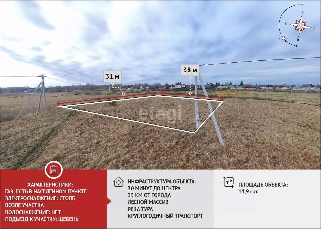 Продается земельный участок 11,91 соток в деревне Коняшина в 35 км от Тюмени по Ирбитскому тракту в живописном месте и в непосредственной близости к реке Тура. До деревни на собственном транспорте 30 мин от центра города по малозагруженному безопасному тракту. Размер участка позволяет отлично разместить большой дом для постоянного проживания,баню и гараж, места для посадок и лужайку с беседкой и зоной барбекю. Коммуникации по улице: электричество, газ. О районе: Деревня располагается в экологическом районе, с двух сторон окружена лесом. Вблизи нет предприятий или заводов. Красивейшее место в экологически чистом районе. Здесь можно отдохнуть телом и душой! Деревня хорошо развивается и близка к городу. Рядом село Каменка с развитой инфраструктурой, там находиться школа, сад, продуктовые магазины, почта, Сбербанк. В 10 мин езды от деревни находятся термальный источник "Аван", а также База отдыха "Кулига-парк", где можно провести время с семьей зимой и летом.