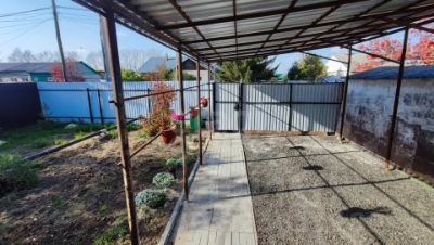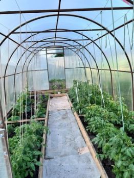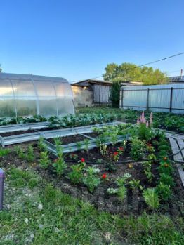 На участке деревянный гараж, баня небольшая, зато очень жаркая, с хорошей печкой, имеются хозяйственные постройки (используется как курятник и крольчатник) и хорошая новая теплица 8 х 3 м уже с посаженными помидорами и огурцами.