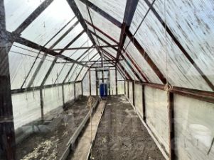 На участке - три теплицы, баня, туалет, пристрой и крытое парковочное место для автомобиля.