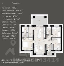 В доме вас встретит просторная кухня-гостиная с большими окнами и высокими потолкам достигающими 3, 5 метров. Мастер-спальня с личным санузлом и гардеробом, наполнят особым комфортом ваш дом.