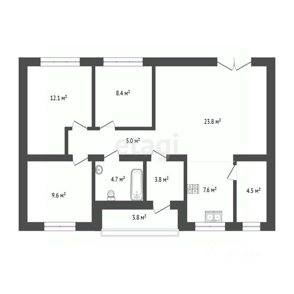 Общая площадь дома 80,4 кв.м. Проектом предусмотрено 3 спальных комнаты, 2 санузла, один из которых с акриловой ванной и душем. А также котельная и просторная кухня-гостиная с выходом на открытую террасу S=17,1 кв.м.