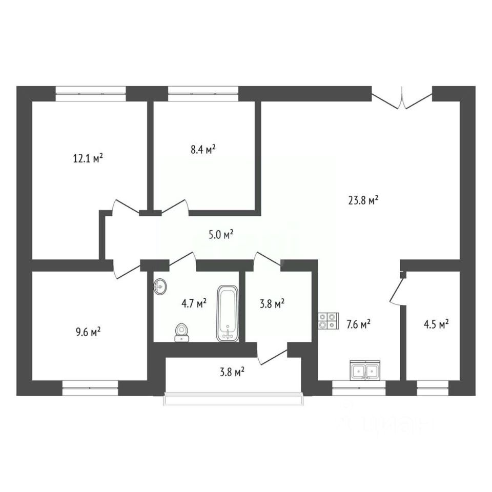 На участке скважина 36 метров и септик (ЖБИ кольца) объемом 10 м3. Общая площадь дома 112 кв.м. Проектом предусмотрено 3 спальных комнаты, 2 санузла, один из которых с акриловой ванной и душем. А также котельная и просторная кухня-гостиная с выходом на открытую террасу S=17,1 кв.м.