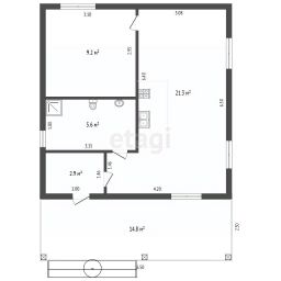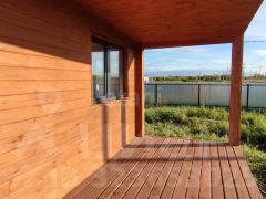 Планировка 1+, спальня 9 м2, кухня гостиная 22 м2 с панорамными окнами, санузел 5 м2, а еще терраса под крышей 15 м2! Отделка внутри дерево, снаружи комбинированная дерево+сайдинг. Скрытая электрическая разводка по всему дому, установлены светильники, розетки выключатели, вывод для кондиционера.