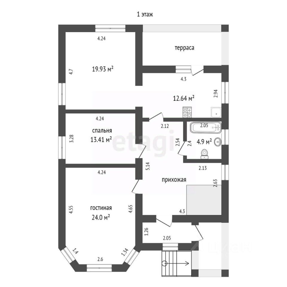 Удобная функциональная планировка. На первом этаже 3 спальни, кухня-гостиная с выходом на террасу, санузел с окном.