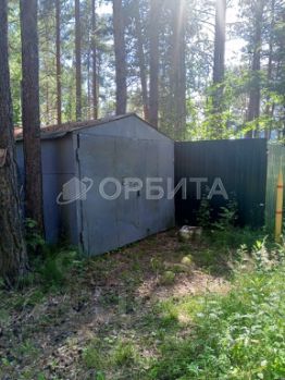 На участке: баня на дровах, металлический гараж, ухоженные насаждения — сосны, ели и другие деревья.