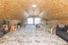 Планировка первого этажа включает просторную кухню-гостиную, две спальни, санузел и котельную. Второй этаж представляет собой свободное пространство для реализации любых проектов: организации дополнительных спален, кабинета или зоны отдыха.