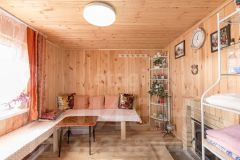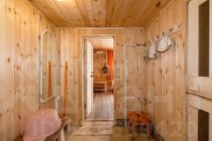 Прекрасная новая баня для спа процедур: зона парильни выполнена из лиственницы и липы, душевая зона из осины, зона отдыха из хвойных пород, с дополнительно установленным теплым полом. В баню проведена центральная вода, установлен водонагреватель для душа.