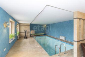 - Просторный первый этаж оснащен шикарным бассейном размерами 3х6 м с регулируемой подсветкой, большой зоной отдыха с диванами и душевыми. Здесь легко разместить спортивный инвентарь и устроить собственный мини-тренажёрный зал.