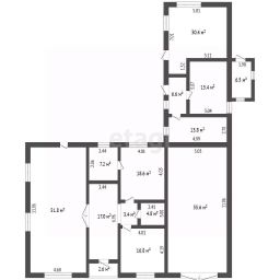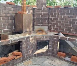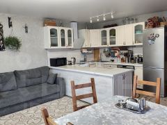 Основной дом выполнен из газоблоков с облицовкой силикатным кирпичом и утеплителем между слоями, что гарантирует энергоэффективность. Фундамент ленточный, высотой 70 см. Внутри — предчистовая отделка с теплыми полами по всему дому, подведенным электричеством и оборудованным санузлом. Планировка включает мастер-спальню с собственной ванной, детскую комнату, просторную кухню-гостиную. Отопление газовое, водоснабжение — из скважины глубиной 40 метров, канализация автономная с переливным баком, не требующим частой откачки.