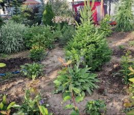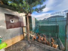 Рядом с основным расположен гостевой дом с полноценной спальней и кухней-гостиной, готовый к проживанию: сделан качественный ремонт, подключены коммуникации, установлена мебель. В гостевом доме есть настоящая русская баня с печью на дровах, полностью готовая к использованию. Гараж с автоматическими воротами пристроен к основному дому. Есть погреб. Территория благоустроена: плодовые и лесные деревья, ягодные кустарники, овощные грядки, цветники создают атмосферу уюта. В теплице хорошо растут помидоры и огурцы. На участке 31 хвойное дерево: 2 голубые ели, пихты, 2 крымских кедра, также груши, яблони, много видов хосты. Участок хорошо разработан и удобрен. Во дворе оборудована мангальная зона и навес для отдыха в любую погоду, есть хозпостройки для содержания животных (куры, кролики породы баран останутся в подарок покупателю). Участок огорожен капитальным забором с автоматическими воротами и двумя въездами.