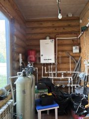 Дом: 160 м² (2 этажа, оцилиндрованное бревно 24 см)