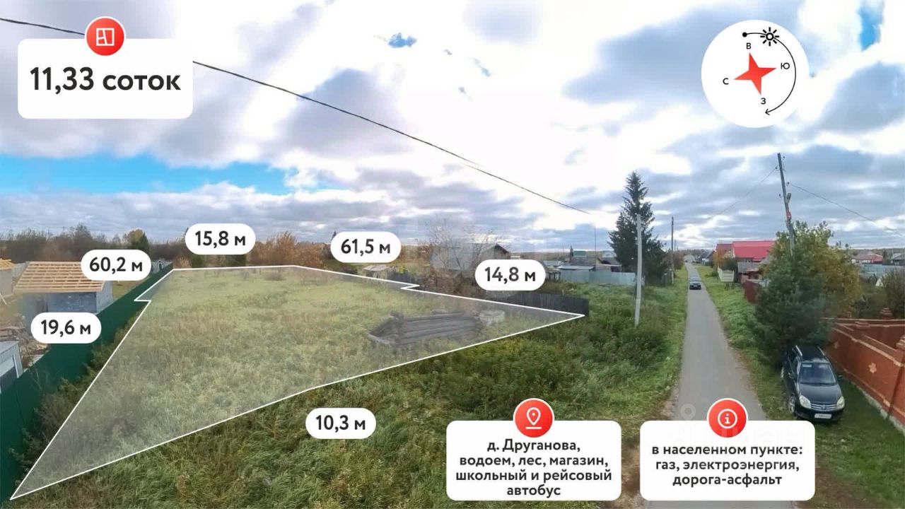 Ухоженный земельный участок площадью 11 соток в экологически чистой деревне Друганова, с возможностью купить смежный участок, код объекта 4840608