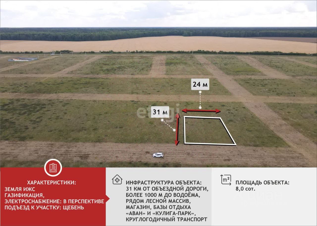 Площадь участка 8 соток.Участок располагается по Ирбитскому тракту в живописном месте, прилегающем к деревне Кулига с северной части, с запада ограничен зоной естественных лесов, с восточной стороны примыкает к территории спортивно-оздоровительного клуба "Кулига-Парк".Рядом источники, лес, водоём. На оптимальном расстоянии около 800 метров - до трассы, не будет слышен гул проезжающих автомобилей