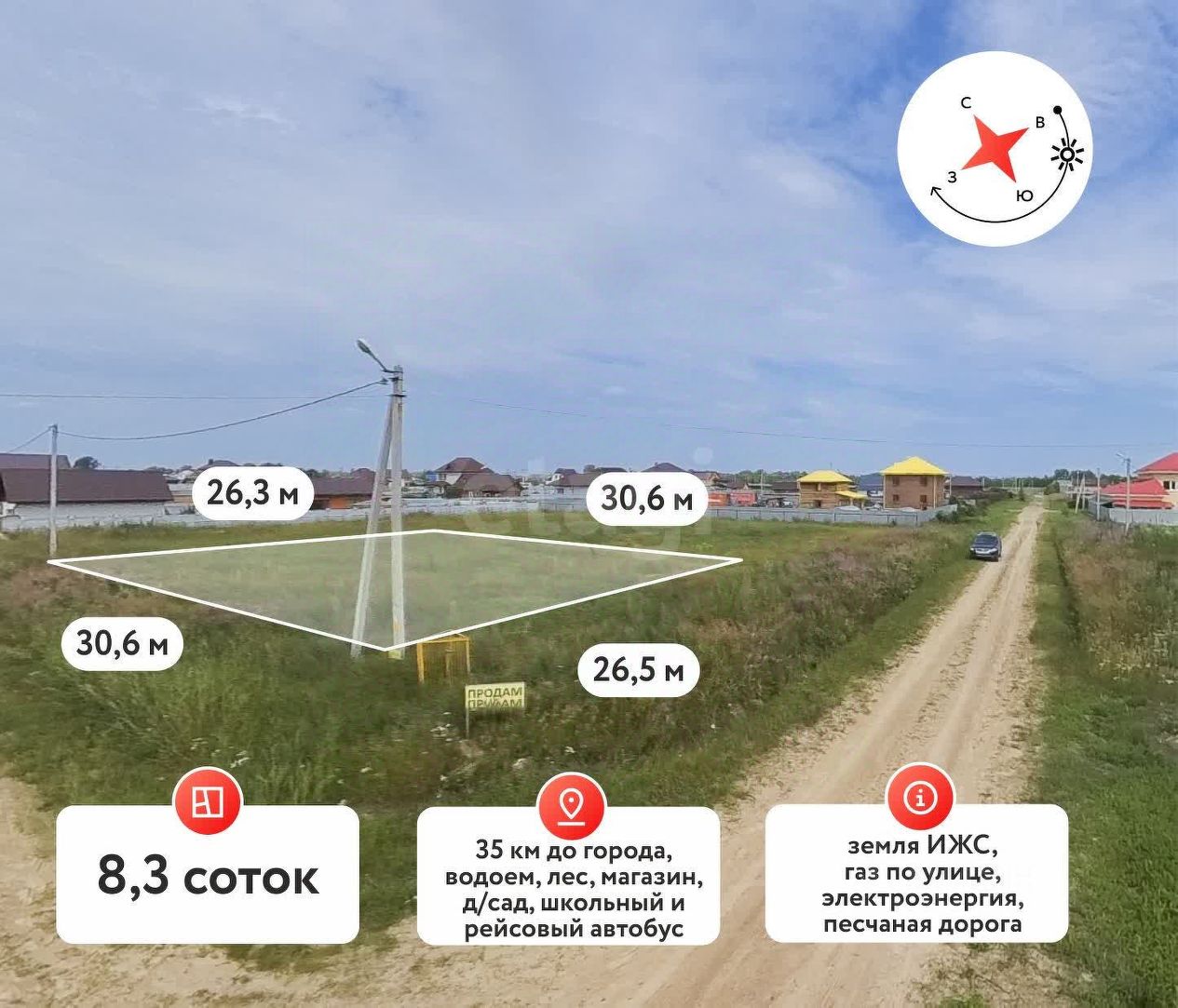 Продается земельный участок в Станице Криводанова. ОДИН СОБСТВЕННИК.СРОЧНАЯ ПРОДАЖА! Участок правильной формы размером 27*31, мерой 8,31 сотки (831 кв.м.). Деревня расположена в самом экологически чистом и живописном пригороде Тюмени.Направление Старого Тобольского тракта на удаленности от города 34 км. Земли населенных пунктов, разрешенное использование - ИЖС, электричество - столб возле участка. Проведена разводка по газу. Расположен на высокой местности, вода не стоит вообще. Подъездные пути - песок и местими щебень, до населенного пункта - асфальтированная дорога через сосновый бор. Идеальное место для проживания. Свежий воздух, прекрасное озеро Нарык,река Тура придадут Вашей загородной жизни особый колорит. Прекрасное предложение для людей желающих организовать счастливую жизнь на природе! Отличные места для рыбалки, до водоема 200 метров. Школьный автобус есть, детский сад, поликлиника. Ждем на просмотр! Согласуем время! Этот земельный участок можно купить