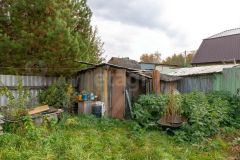 Деревянный сарай и в нем санузел, рядом с ним дровяник.