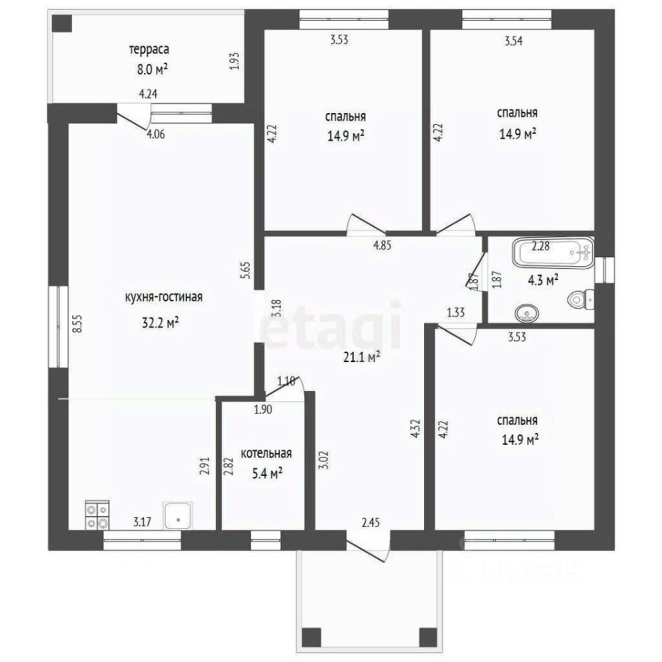 Внешнее пространство включает открытую террасу, где можно наслаждаться свежим воздухом и проводить время с семьей. Участок высокий и не требует отсыпки.