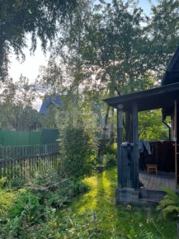 Продаётся зеленый уютный участок с добротным деревянным двухэтажным домом, баней и хозяйственными постройками в живописном месте у воды.