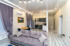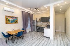 - Просторной кухней-гостиной (остается функциональный гарнитур со встроенной техникой, что позволяет заехать без дополнительных затрат).