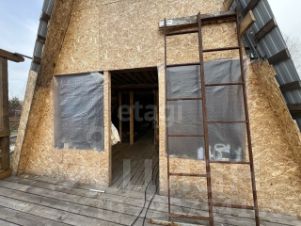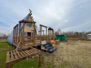 На участке расположен дом на винтовых сваях 147 м2 в процессе строительства с открытой террасой и временная баня.