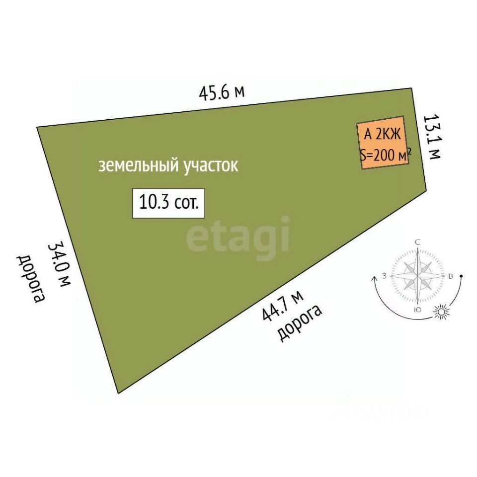 Дом расположен на земельном участке 10,3 сот. участок высокий, отсыпан, является угловым, подъезд возможен с трех сторон.