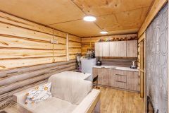 На первом этаже дома располагается просторная кухня-гостиная, комната для гостей, санузел и котельная.