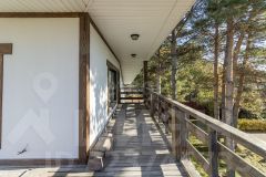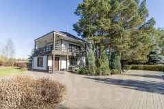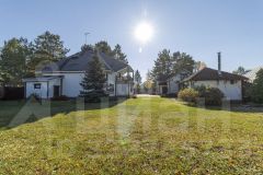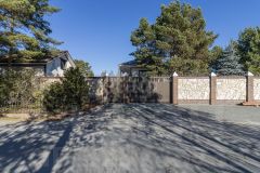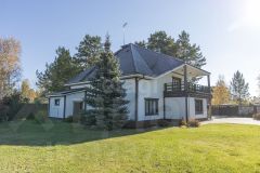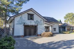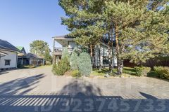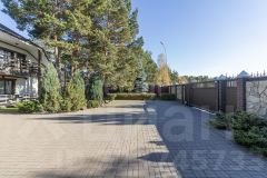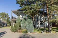 Гараж на два автомобиля оснащен автоматическими воротами. Участок продуманно зонирован: здесь найдется место и для парковки, и для отдыха в крытой беседке, и для декоративного газона, а вековые сосны обеспечивают тень и естественную приватность.