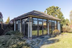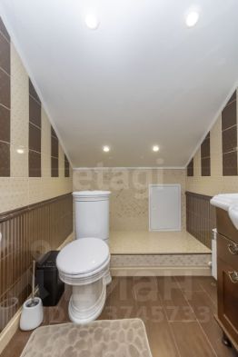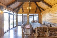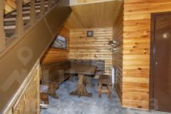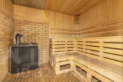 На благоустроенной территории выделяется двухэтажная баня с двумя гостевыми комнатами для круглогодичного использования, имеющая качественную отделку.