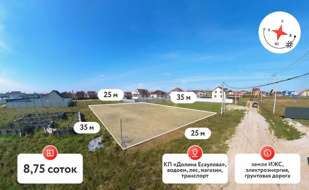 Продается прекрасный земельный участок площадью 8,75 соток в деревне Есаулова, расположенном всего в 20 минутах от города по Старотобольскому тракту.