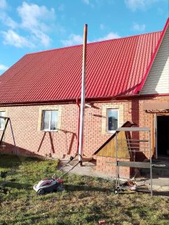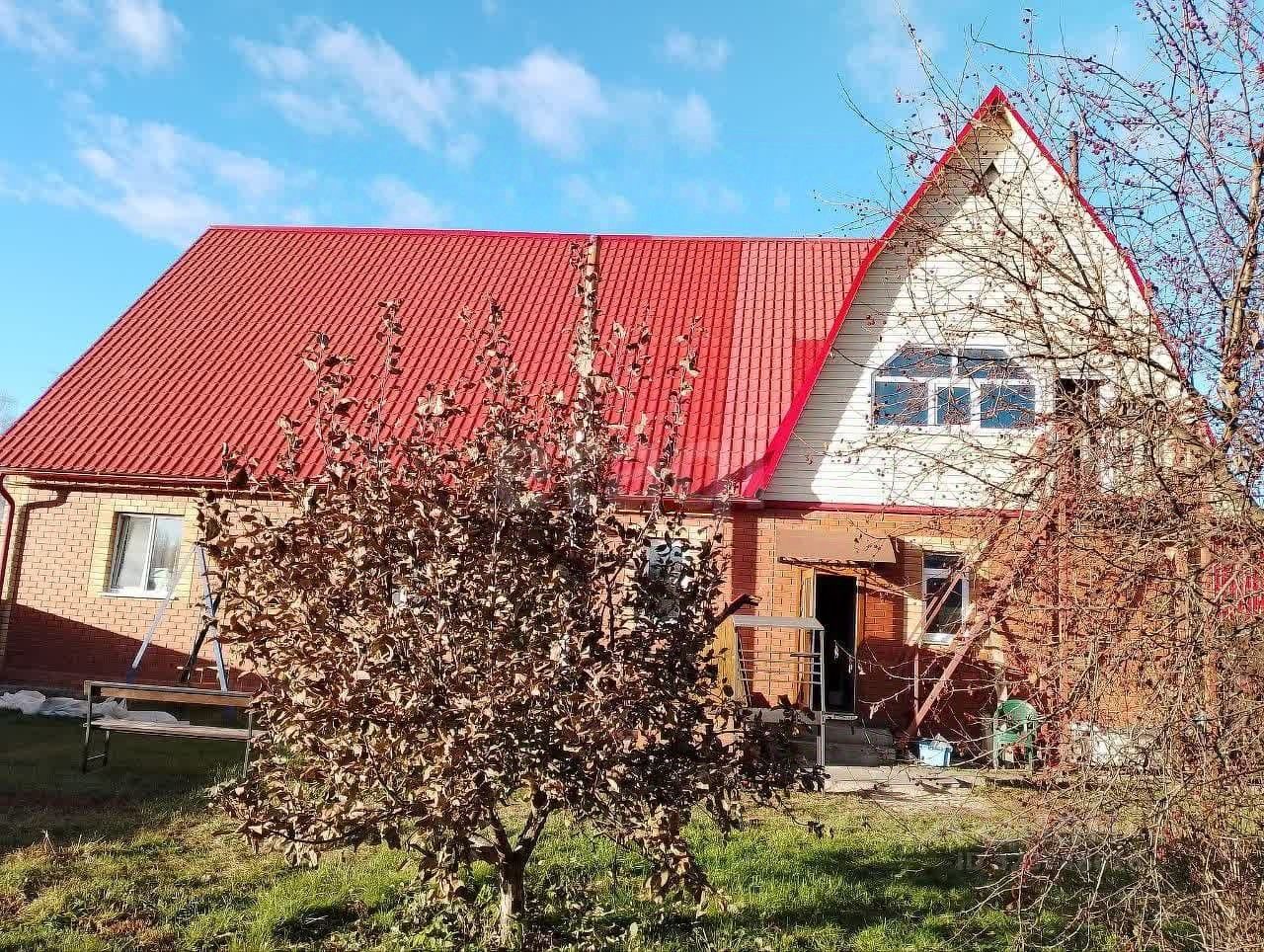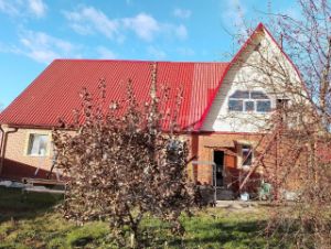 Материал стен - брус, обложен красным кирпичём. Туалет в доме. Вода и электричество 150кВт заведено и разведено по дому. Септик на 8 кубов, отопление от газового котла.