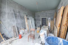 Сделано в доме : заведены коммуникации, разводка теплых водяных полов по дому, залита стяжка, стены выровнены и оштукатурены, батареи отопления также есть. Осталось сделать финишную отделку .