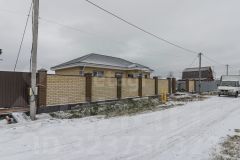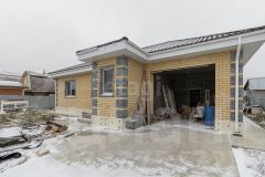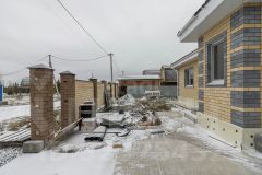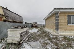 Очень хороший добротный забор, вместительный гараж с высоким потолком, - под автоматические ворота. Въезд, отмостка вокруг дома также сделаны. Материал дома - керамзитобетонные блоки, затем утеплитель , облицовка кирпичом.