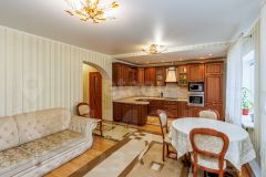 Продается дом площадью 148,8 кв.м. в коттеджном поселке Комарово, расположен на угловом участке 10,11 соток с удобными подъездами с 2-х сторон. На первом этаже просторная кухня-гостиная площадью 31,3 кв.м., кабинет, санузел, техническое помещение под лестницей с погребом (1,6*2м), прихожая, котельная, остекленная входная группа. Второй этаж мансардный- три спальни, гардеробная, санузел. Ремонт выполнен в классическом стиле с использованием качественных материалов: окна пластиковые, потолки выровненные, в кухне-гостиной белый матовый натяжной, обои в светлых тонах, на полу уложен ламинат, в санузлах кафель, теплый пол. Высота потолков 2,65 метра на первом и втором этажах. При продаже остается вся мебель, кухонный гарнитур, плита, духовой шкаф, вытяжка, посудомоечная машина, шкаф-купе, кондиционеры. Дом построен из газозолобетонных блоков, стены утеплены пенопластом, облицовка из кирпича, фундамент -железобетонные сваи, кровля - металлочерепица, межэтажная железобетонная плита. Дом подключён ко всем необходимым коммуникациям: центральному водоснабжению и канализации, газу и электричеству, установлены фильтры для воды, учет по счетчикам. Система отопления и горячего водоснабжения обеспечивается современным газовым котлом, бойлер на 100литров, установлен насос для усиления напора воды в системе водоснабжения. Участок ухоженный правильной формы полностью огорожен. Имеется гараж 20.6 кв.м. Утеплены стены и ворота, пол - армированная плитка. Оборудованы парковочные места, навес, кованная беседка. Ворота при въезде на территорию открываются автоматически с помощью пульта, что добавляет удобства в использовании. Из насаждений: пять яблонь, две груши, три вишни, смородина чёрная белая и красная, крыжовник, ирга, калина, малина, клубника пять туй, четыре сосны, две ели, три гортензии, жасмин, климатис, газон, облагороженные грядки, компостная яма, теплица ( 3*6 метра), выложены дорожки из тротуарной плитки. Транспортная доступность высокая: в шаговой доступности находится остановка общественного транспорта и торговый центр "Магнит", дорога до центра города занимает 15 минут. Для семей с детьми предусмотрен школьный автобус, который ходит до новой современной школы с широким выбором дополнительных занятий. В непосредственной близости расположены все необходимые магазины, современная поликлиника, кафе, рестораны и центры бытового обслуживания. Этот объект идеально подходит для комфортной семейной жизни с удобствами большого города и спокойствием загородного жилья. Код пользователя: 48149 Номер в базе: 10292680