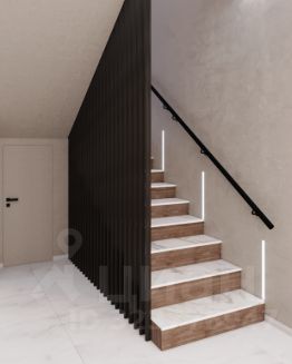 Капитальная бетонная лесница на второй этаж с выведенными проводами под эффект парящей лестницы.
