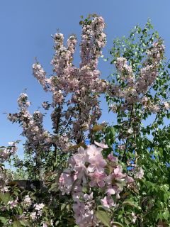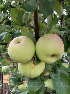 Ландшафт: взрослые деревья, включая плодовые (4 яблони, 3 вишни, дальневосточный орех), хвойные насаждения (пихты, кедры)